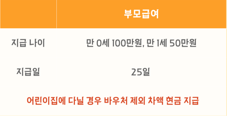 이때 바우처가 부모 급여 지원금액보다 적을 시 차액인 현금으로 지급됩니다.