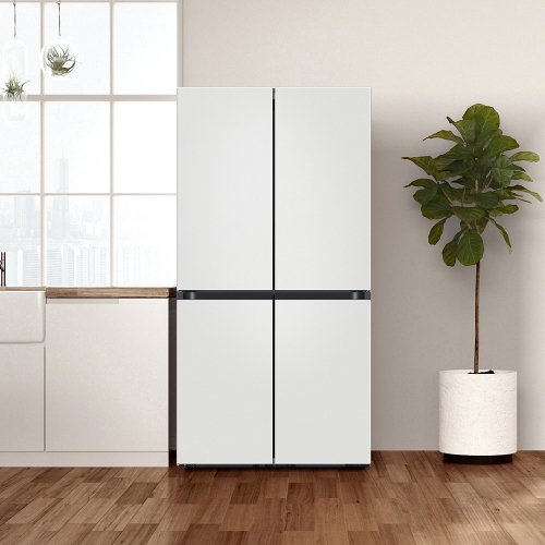 3.구성: 비스포크 4도어 냉장고는 윗부분에 냉동실과 아랫부분에 냉장실이 있는 일반적인 구조와 달리, 중간에 FlexZone라는 가변 영역을 추가하여 총 4개의 독립적인 도어로 구성되어 있습니다. 이를 통해 식재료를 보다 효율적으로 분류하고 관리할 수 있습니다.