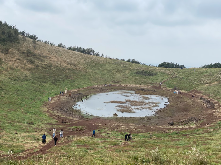 세 번째, 제주도 여행 추천지는 필수 코스인 금오름입니다. 오름 중에서도 유명한 금오름은 이효리 님의 뮤직비디오에도 나왔었는데요, 오르는 길은 숲속과 언덕을 산책하는 느낌으로 오를 수 있으며, 자연을 만끽할 수 있습니다.
