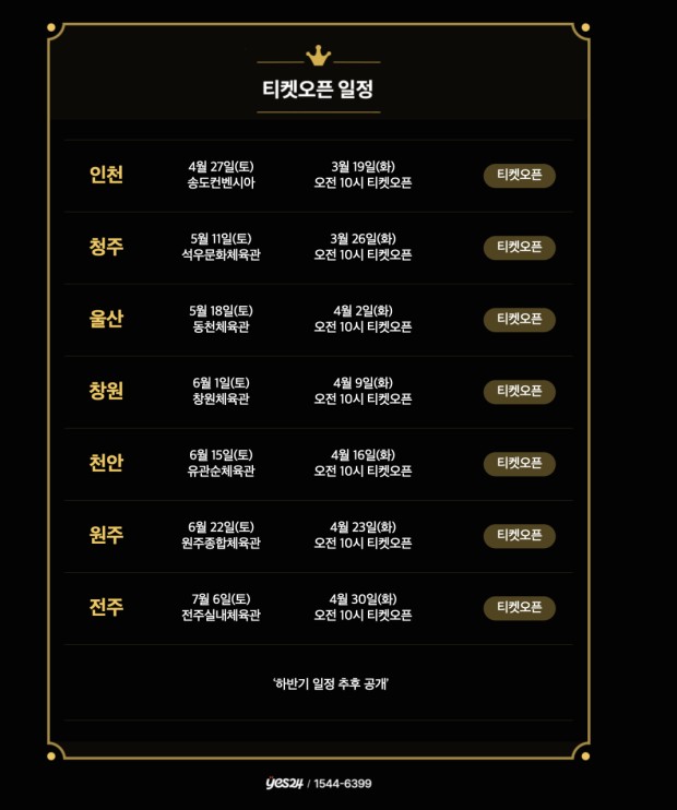 이번 콘서트는 상하반기로 나뉘어 진행될 예정으로, 상반기 일정은 나왔지만 하반기 일정은 아직 오픈되지 않았기에 상반기 콘서트 일정에 대해서만 포스팅해보도록 하겠습니다.